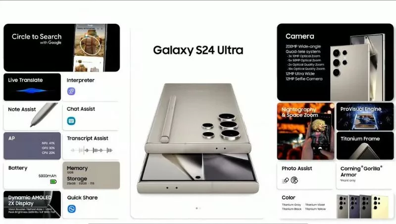 Samsung presentó el Galaxy S24 Ultra, Galaxy S24+ y Galaxy S24, destacando nuevas experiencias móviles con Galaxy AI. Además, la marca surcoreana aseguró que toda la serie de Galaxy S24 cuenta con la Inteligencia Artificial para facilitar la comunicación sin barreras con traducciones inteligentes de texto y llamadas, hasta maximizar la libertad creativa con el Motor ProVisual de Galaxy.
