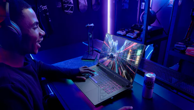 Para quienes busquen una laptop extremadamente potente para videojuegos, pero en un formato más pequeño, la ROG Strix G16 es una excelente opción. Equipada con el mismo procesador Intel Core i9 de 24 núcleos, una pantalla de 16” FHD ultrarrápida de 165 Hz con relación de aspecto 16:10 y el sistema térmico ROG Intelligent Cooling.
