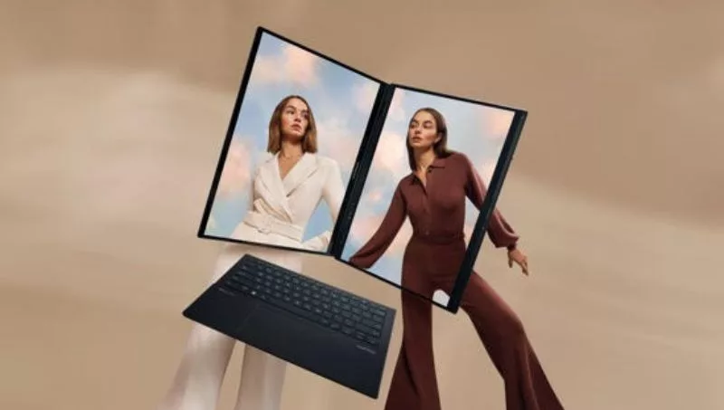 Modo portátil: los usuarios pueden colocar el teclado ASUS ErgoSense Bluetooth y el panel táctil en la pantalla inferior para disfrutar de una experiencia tradicional de estilo portátil, con una pantalla de 14 pulgadas de aspecto 16:10. El conector pogo pin recarga automáticamente el teclado.